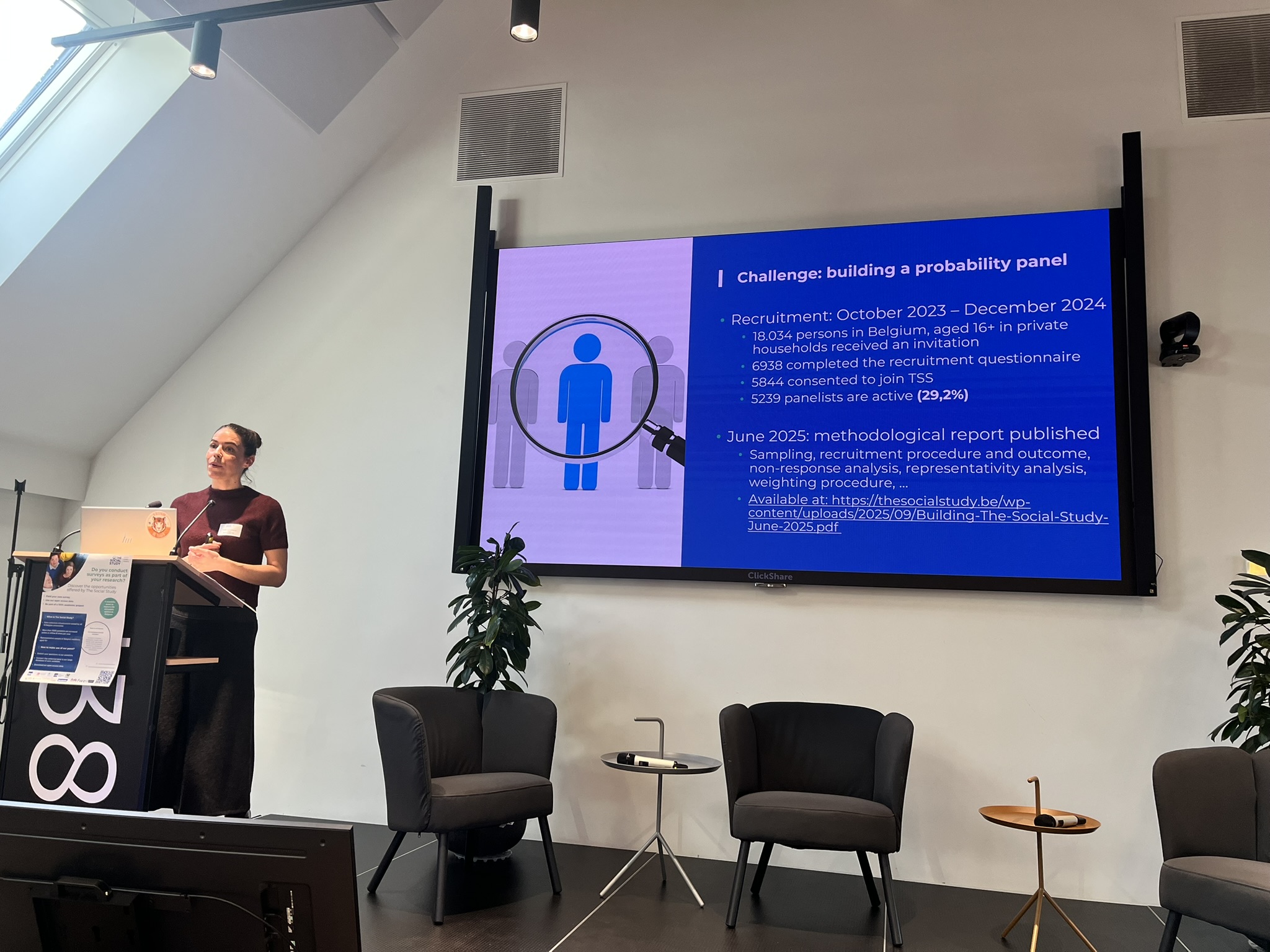 Tijdens de conferentie werd een reeks verhelderende presentaties gegeven op basis van onderzoek met gegevens uit The Social Study. Sprekers deelden bevindingen uit analyses van de allereerste Core Study Questionnaire en bespraken de resultaten van onderzoek op basis van Commissioned Questionnaires. Daarnaast presenteerden de winnaars van de TSS Early-stage Researcher Prize hun plannen voor de gratis onderzoekstijd die zij hadden ontvangen. De dag werd afgesloten met een boeiend rondetafelgesprek over de rol van onderzoeksinfrastructuren binnen het Belgische datalandschap.